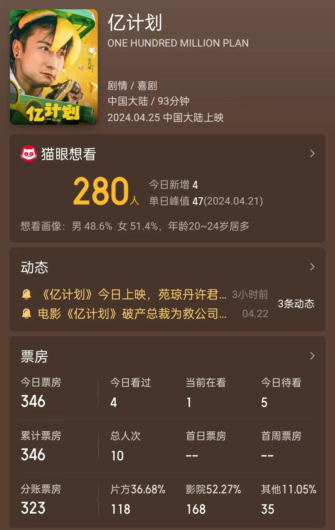 据数据统计,当日只是惟有9东谈主买票,首日票房只是惟有346元。