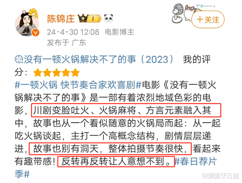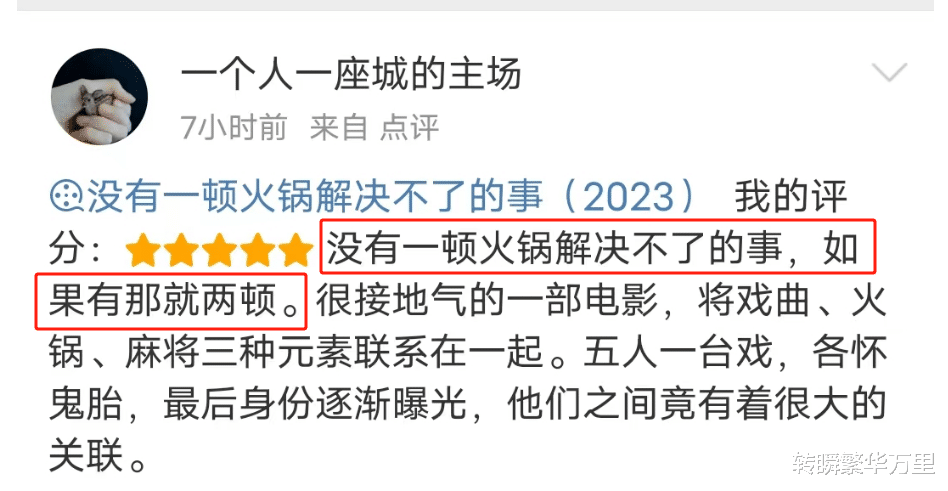 搭配着暖锅、川剧和麻将一谈食用,这方言竟然越听越巴适,看完电影我齐思好勤学一学了。