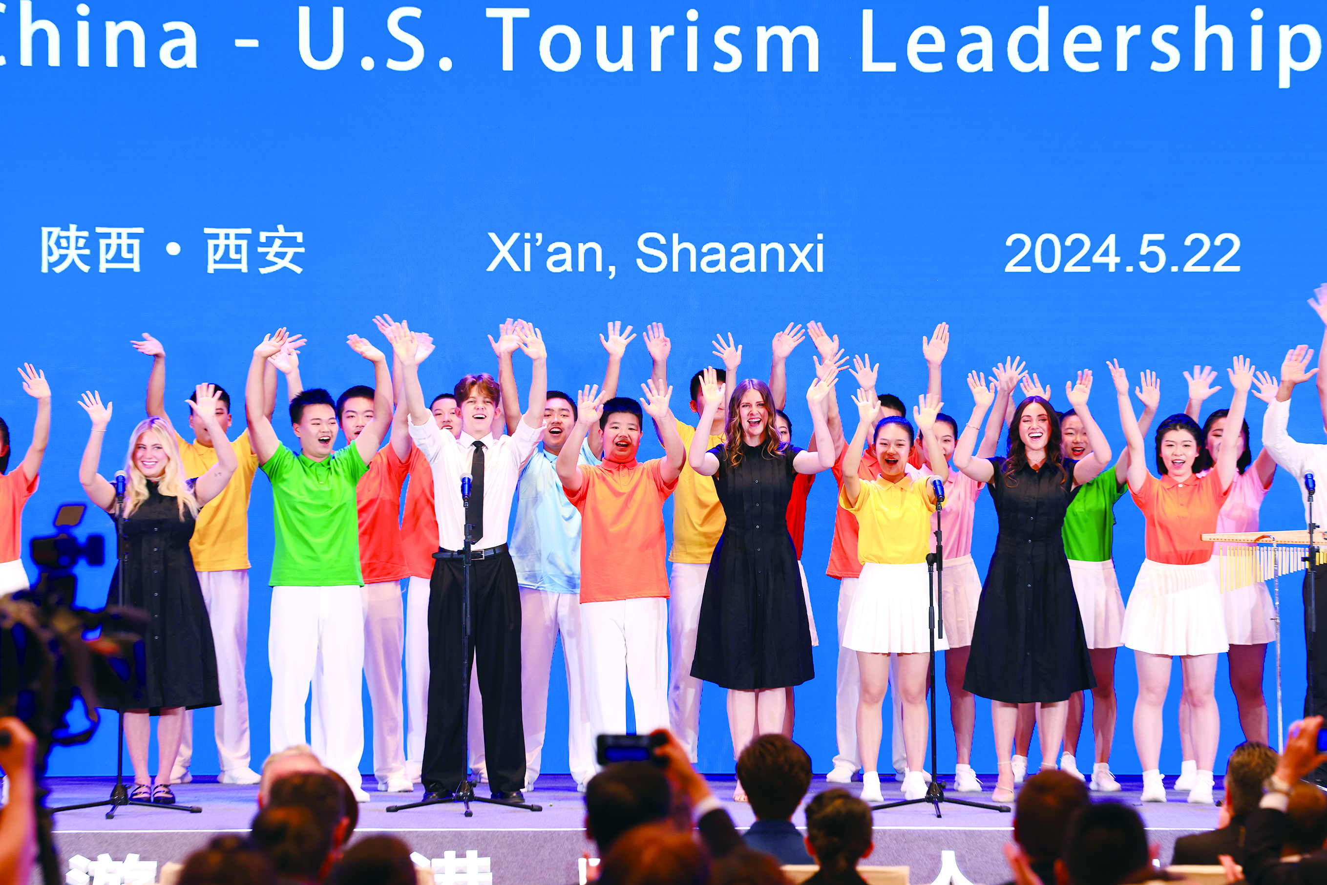 欧兰此行,恰是手脚文化使臣。在22日举行的中好意思旅游高层对话开幕式上,好意思国杨百翰大学歌舞团和陕西中学生齐唱团扮演了中国民歌《茉莉花》与好意思国经典歌曲《月亮河》。正确切景上演所展示的那样,穿越历史长河,不同的文化当天依然在此和谐、互鉴。