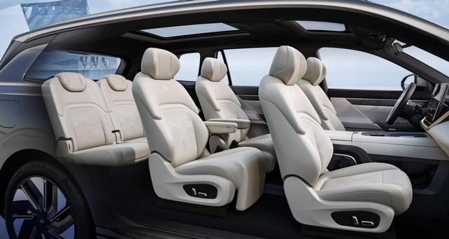 座舱方面,该车接收三排六座布局,用户可自界说和解为 5 座或 4 座布局,提供零重力座椅。该车接收有机硅软包婴儿级环保座舱,配备双层夹胶隔音玻璃 MAX,全车标配 20 扬声器。此外,该车前排配备 15.6 英寸高清中控屏、9.2 英寸高清流媒体后视镜,后排配备 15.6 英寸生态大屏。