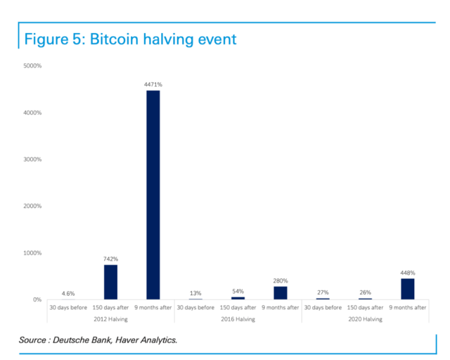 德银分析师主见控制。该行分析师Marion Laboure周四在长远中称:“阛阓一经在一定进度上消化了比特币‘减半’的影响。琢磨到比特币算法的特点,这次减半在很猛进度上已被阛阓预期。咱们瞻望,减半后比特币价钱不会大幅上扬。”