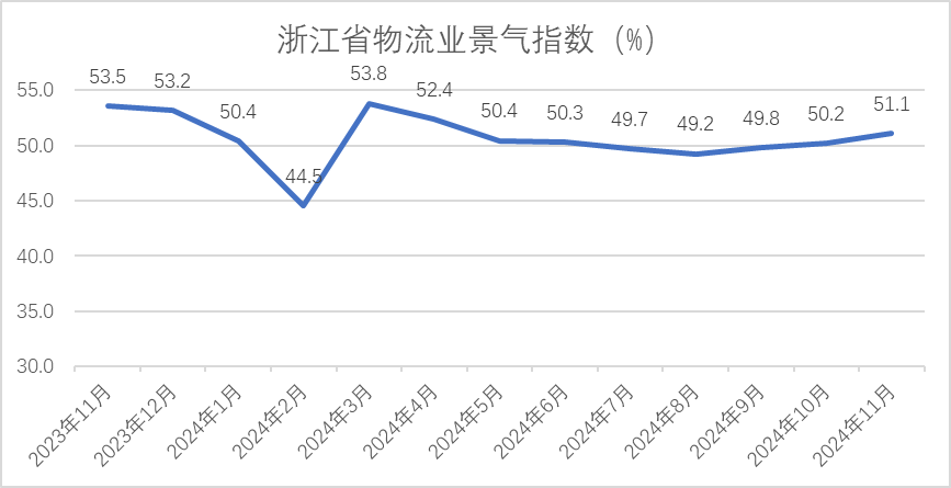 2024年11月,浙江省的物流业景气指数为51.08%,较上月回升0.9个百分点,流通两月保捏膨胀区间。本月,我省物流业活跃度有所回升,需求呈暖和增长态势,行业竞争有改善迹象,企业蓄意压力有所缓解,总体预期积极向好,其中,电商物流、海外物流等业态进展亮眼。具体看法看,业务总量、平均库存量、库存盘活次数、资金盘活率、斥地欺骗率、物流服务价钱、主营业务利润、业务四肢预期等指数均出现了回升。