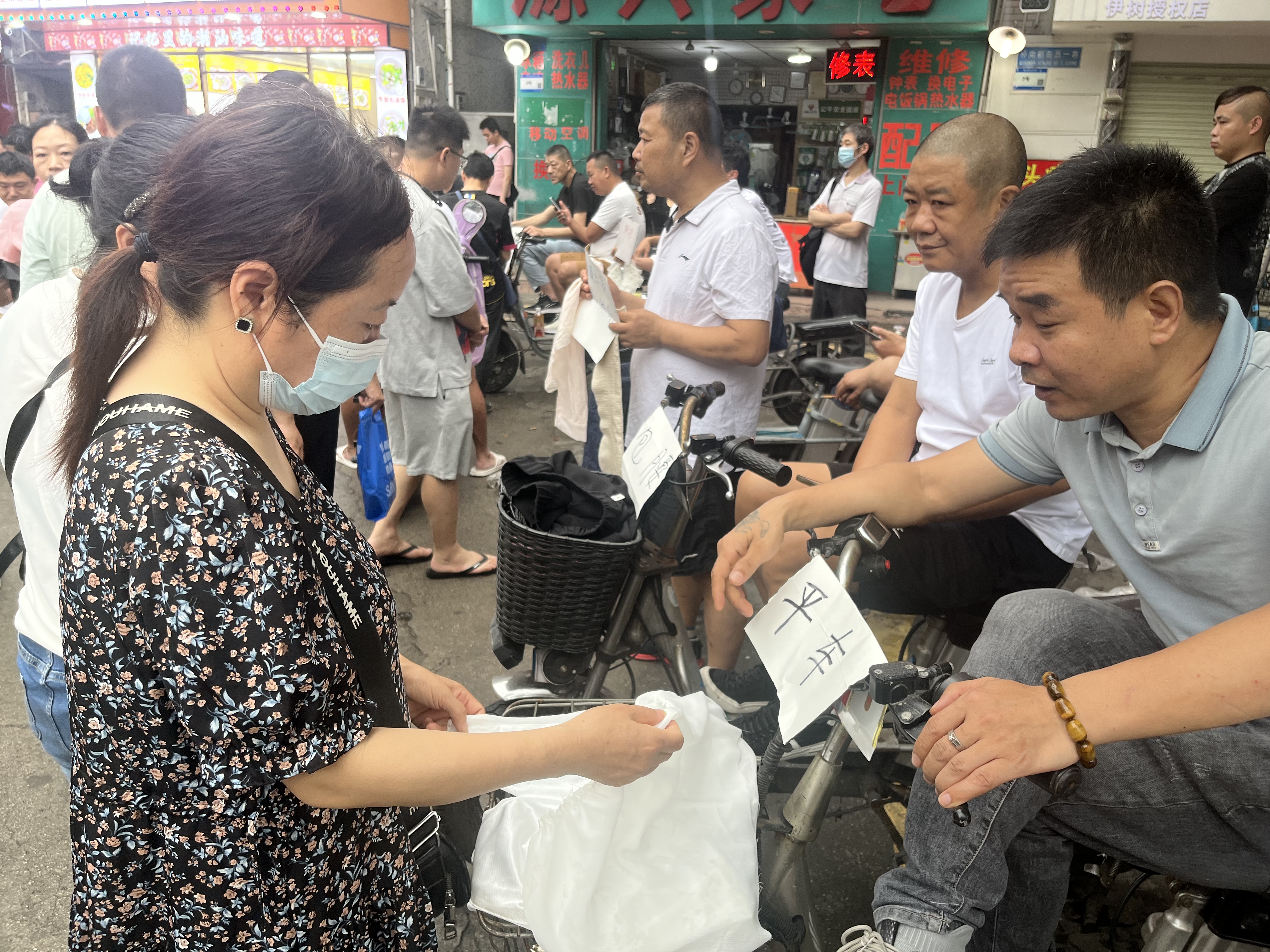 4月20日,在大塘地铁站近邻的上涌桥边,十几名档口雇主们坐在电瓶车上,一字排开,行家都准备发“加工单”给制衣厂,恭候工场过来询价。老李是沙河档口雇主,他的电瓶车头篮子里,放了两件女装裙子,正在恭候制衣厂过来接单询价。老李现场告诉第一财经记者,“咱们这里都是发加工单的,今天有大几百件衣裳需要作念出来,一上昼没比及加工场过来接单。当今不好搞,加钱也得‘排班’进去。”