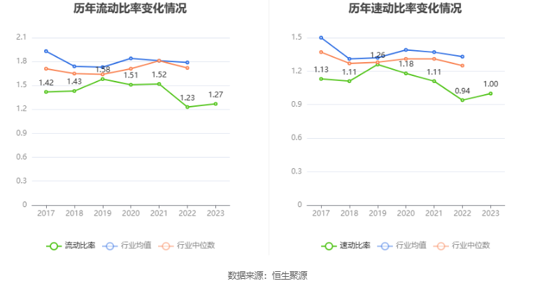 2023年,公司流动比率为1.27,速动比率为1.00。