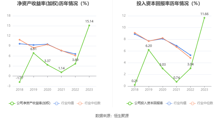 数据袒露,2023年公司加权平均净财富收益率为15.14%,较上年同时增长11.45个百分点;公司2023年参预老本陈诉率为11.66%,较上年同时增长8.62个百分点。