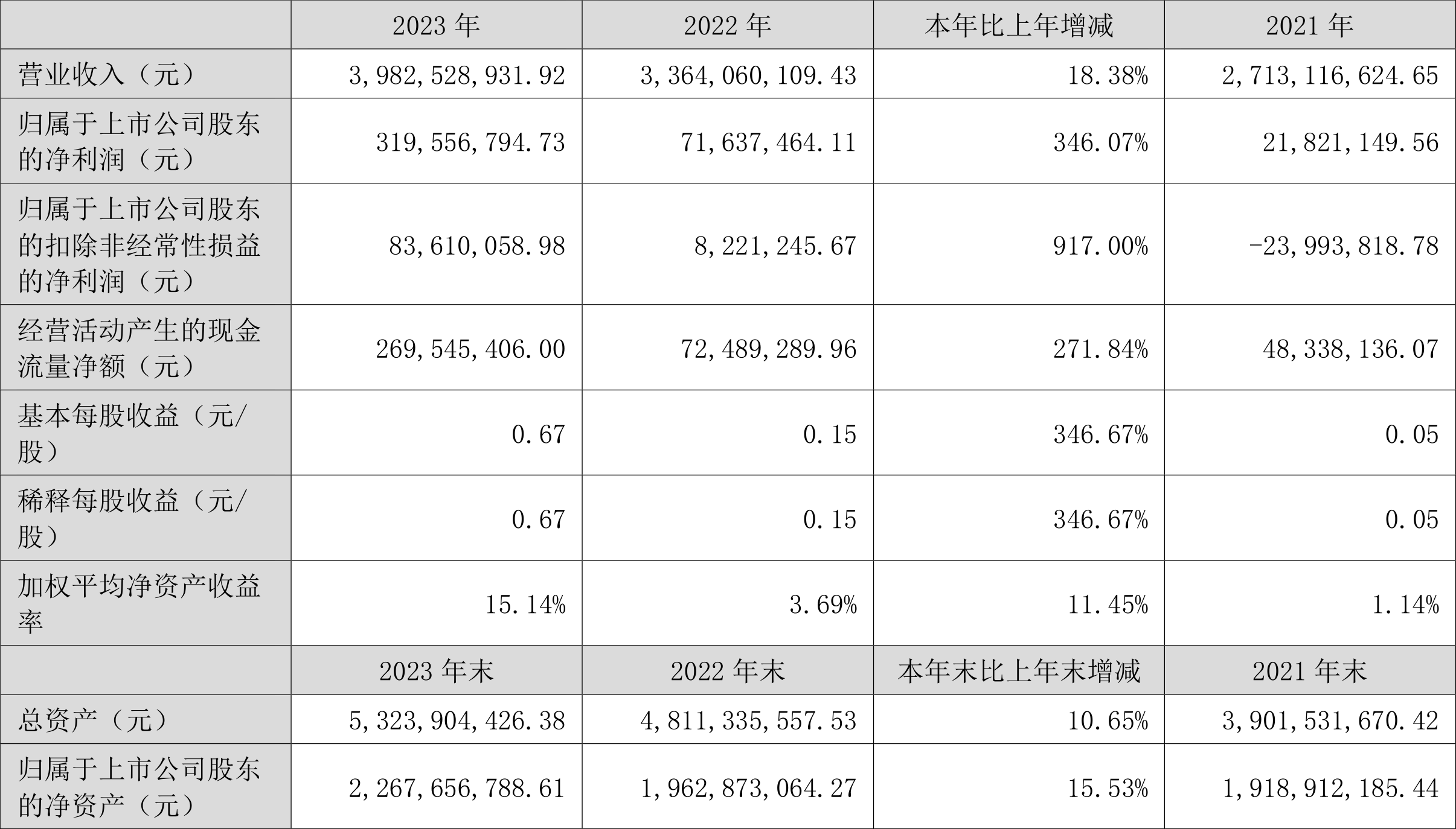 原标题:万安科技:2023年净利润3.20亿元 同比增长346.08%