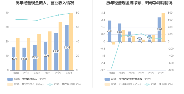 2023年,公司筹画活动现款流净额为2.70亿元,同比增长271.84%;筹资活动现款流净额-1.06亿元,同比减少2.57亿元;投资活动现款流净额-5865.39万元,上年同时为-1.85亿元。