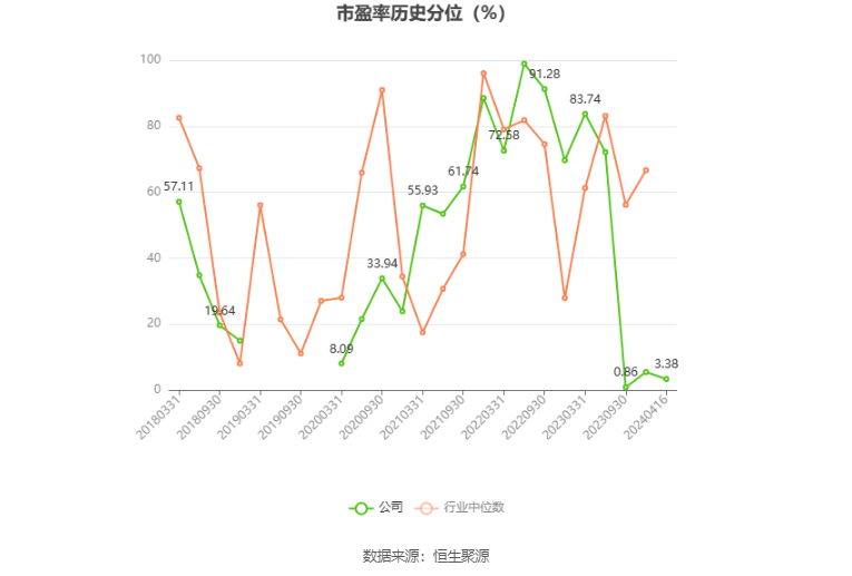 市盈率为负时,不袒露当期分位数,会导致折线图中断。