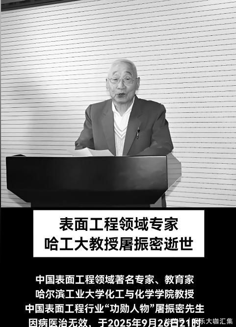 同为9月26日,我国名义工程鸿沟巨擘级东说念主物、哈尔滨工业大学资深教师屠振密因病在哈尔滨灭尽,享年99岁,属遐龄善终。