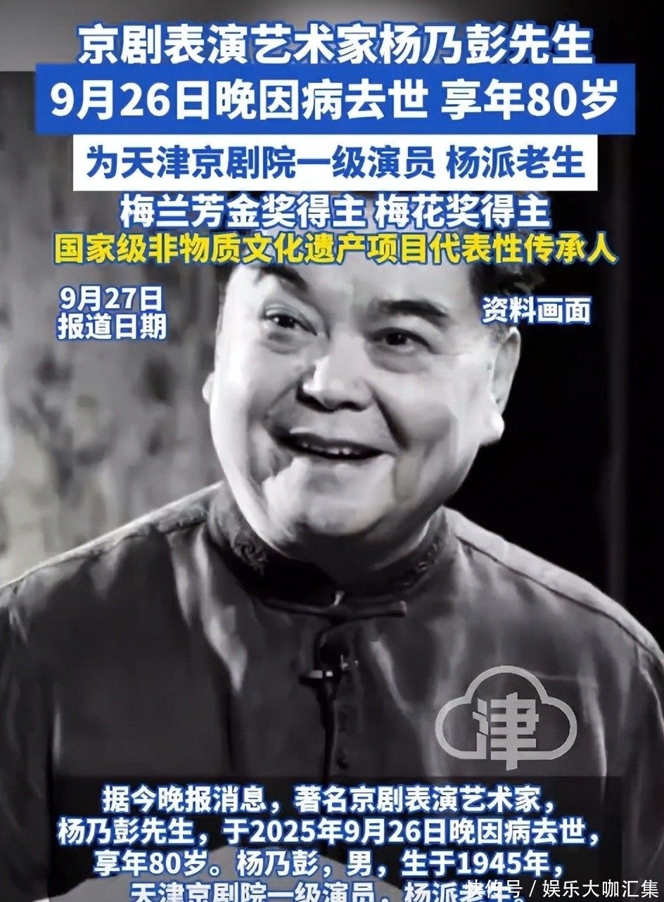 2025年9月26日,我国京剧艺术界失去一位巨匠——知名京剧饰演艺术家、国度级非物资文化遗产代表性传承东说念主杨乃彭先生撒手尘寰,享年八十岁。