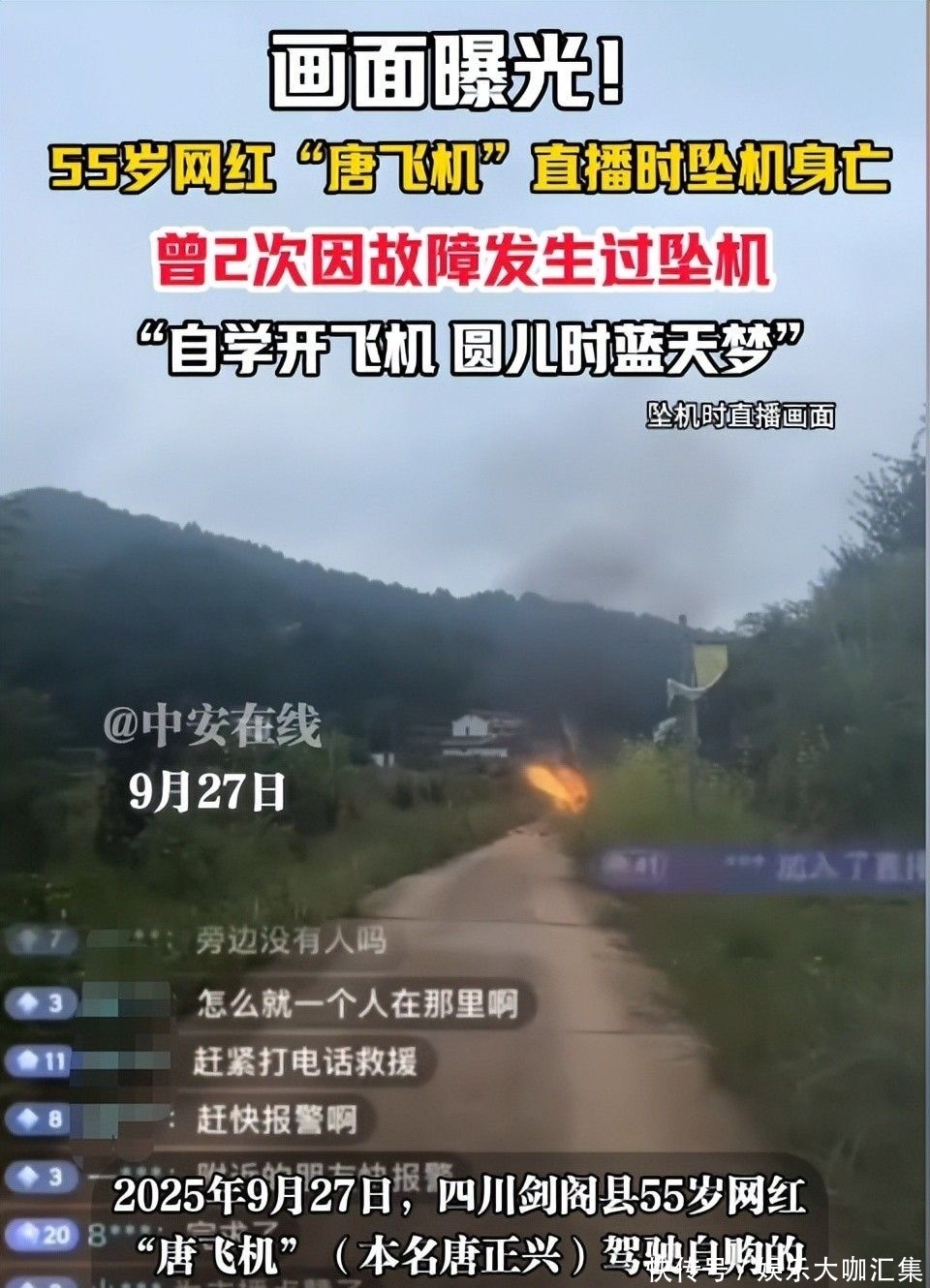 9月27日,四川广元剑阁县知名民间飞行爱好者“唐飞机”传出厄运音信。这位在集结上被称为“唐飞机”的男人本名为唐正兴,耐久热衷于克己超轻型飞行器,并在应答平台共享飞行平淡,领有接近十万粉丝的柔和量。