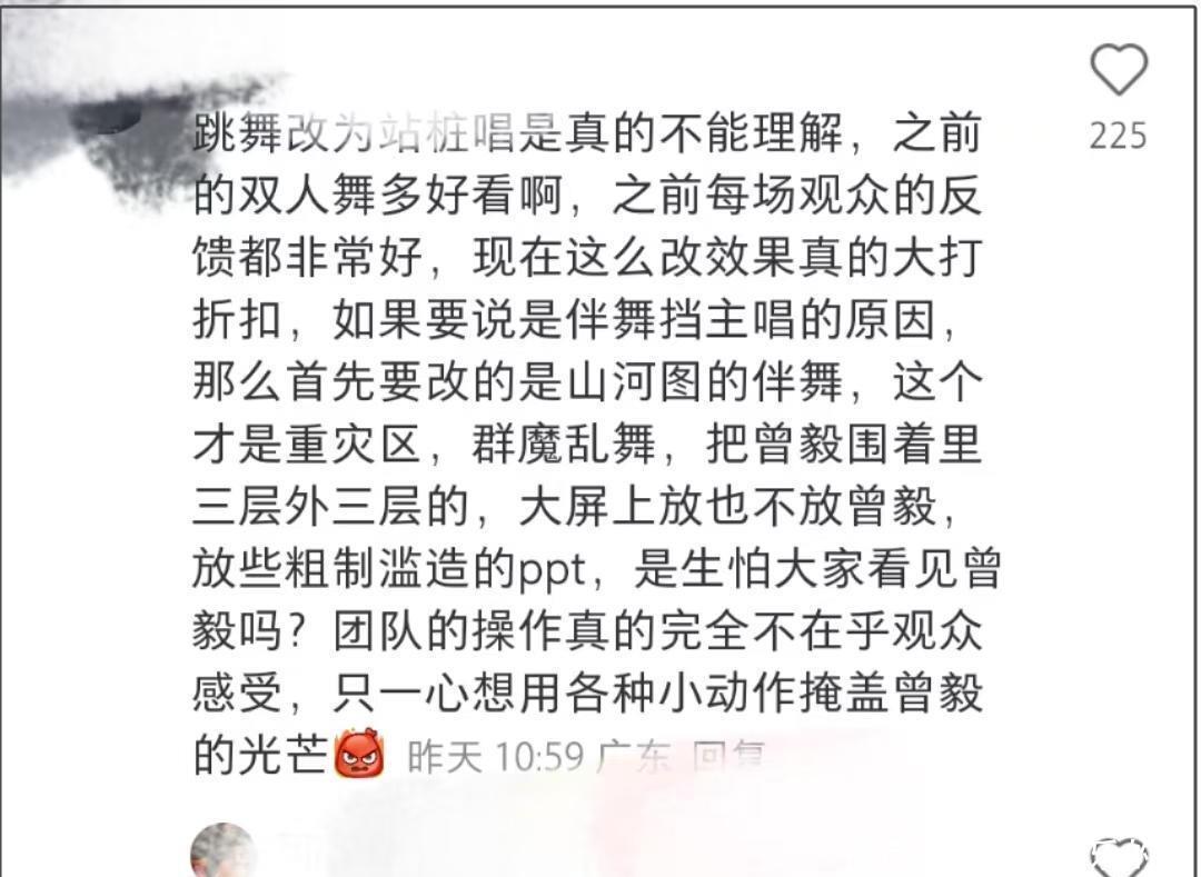 更逗比的是,有东谈主尽然说是因为伴舞挡了曾毅的镜头才被踢出局。后果粉丝翻出《江山图》的现场摄像,看那伴舞把曾毅团团围住,就像粽子通常,大屏幕上还播着乡村气象画。这操作险些就像把C罗按在替补席上,然后跟不雅众说:“我们这样作念是为了让民众更了了看到草坪。”