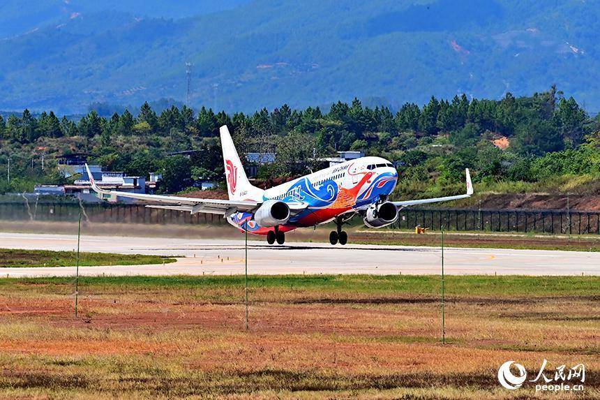 由瑞金飞往北京的CA8698航班冉冉驶入跑谈,腾空而起、飞向北京。东谈主民网 朱海鹏摄