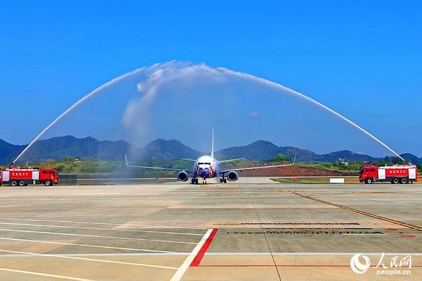 从北京大兴外洋机场飞来的CA8697航班安妥降落赣州瑞金机场,机场以民航最高礼节“过水门”理财,艳丽着赣州瑞金机场细腻通航投运。邓浩亭摄