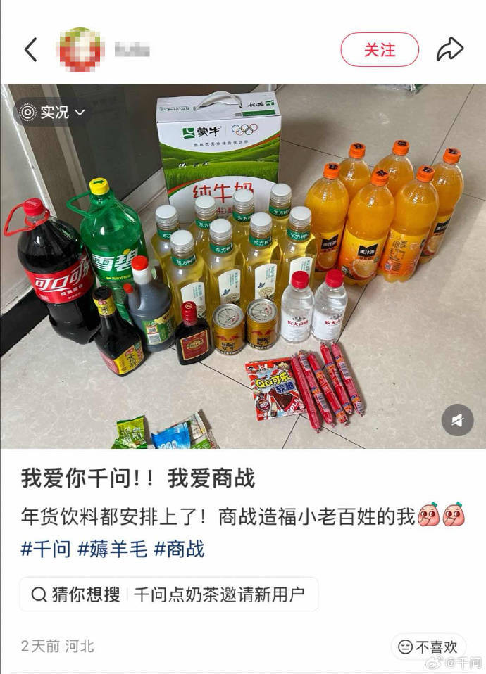 据先容,自2月6日免单卡上线以来,还是有上百万东说念主在天猫超市和盒马下单购买年货,狂放晒单。并教唆千问免单卡灵验期可捏续至2月28日,还有19天可用。